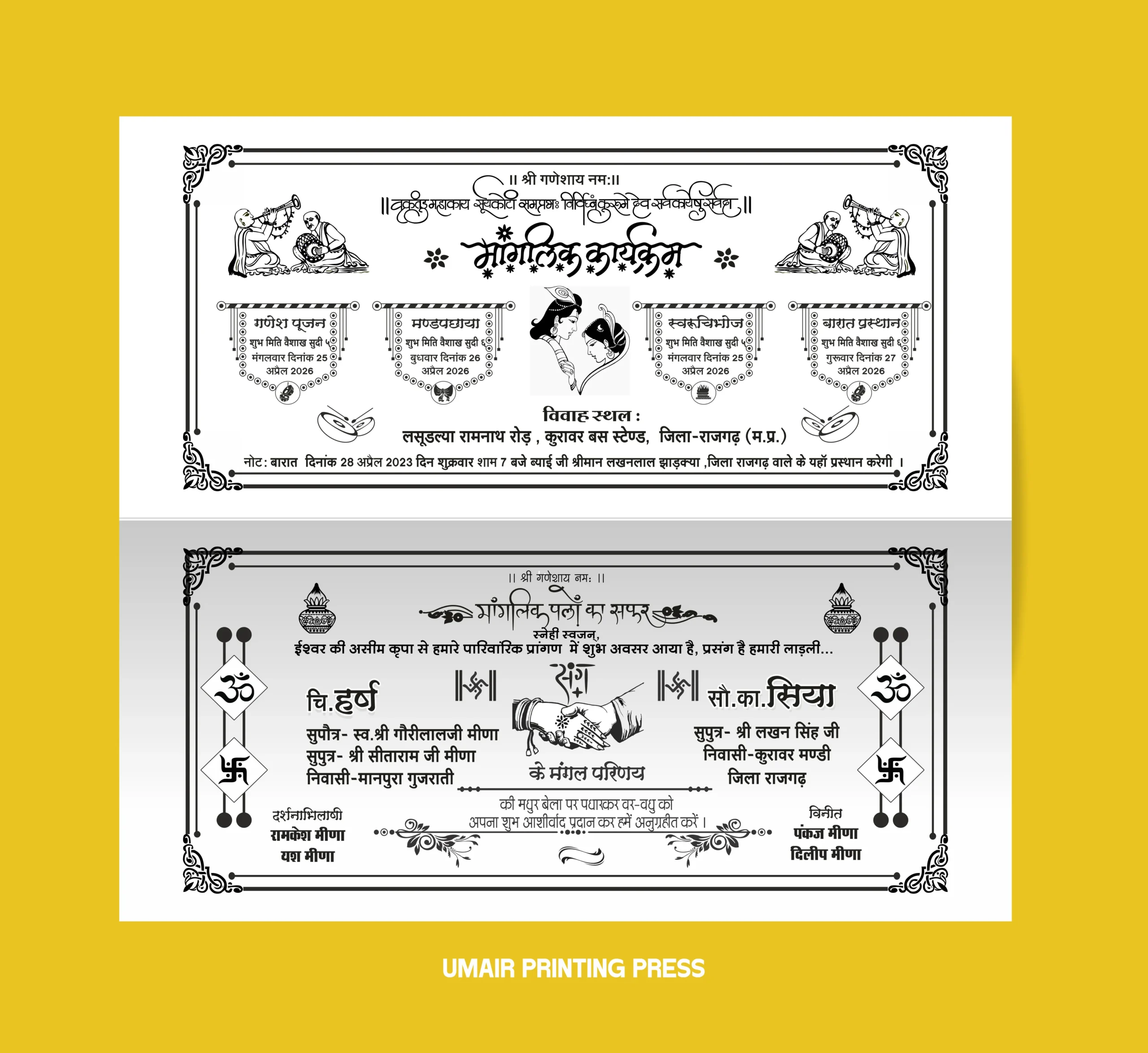 If you are looking for a professional Wedding Card CDR File for screen printing or digital printing, this template is a perfect choice. The design includes elegant traditional elements such as decorative borders, cultural symbols, and stylish Hindi typography that make the invitation card look premium and attractive.